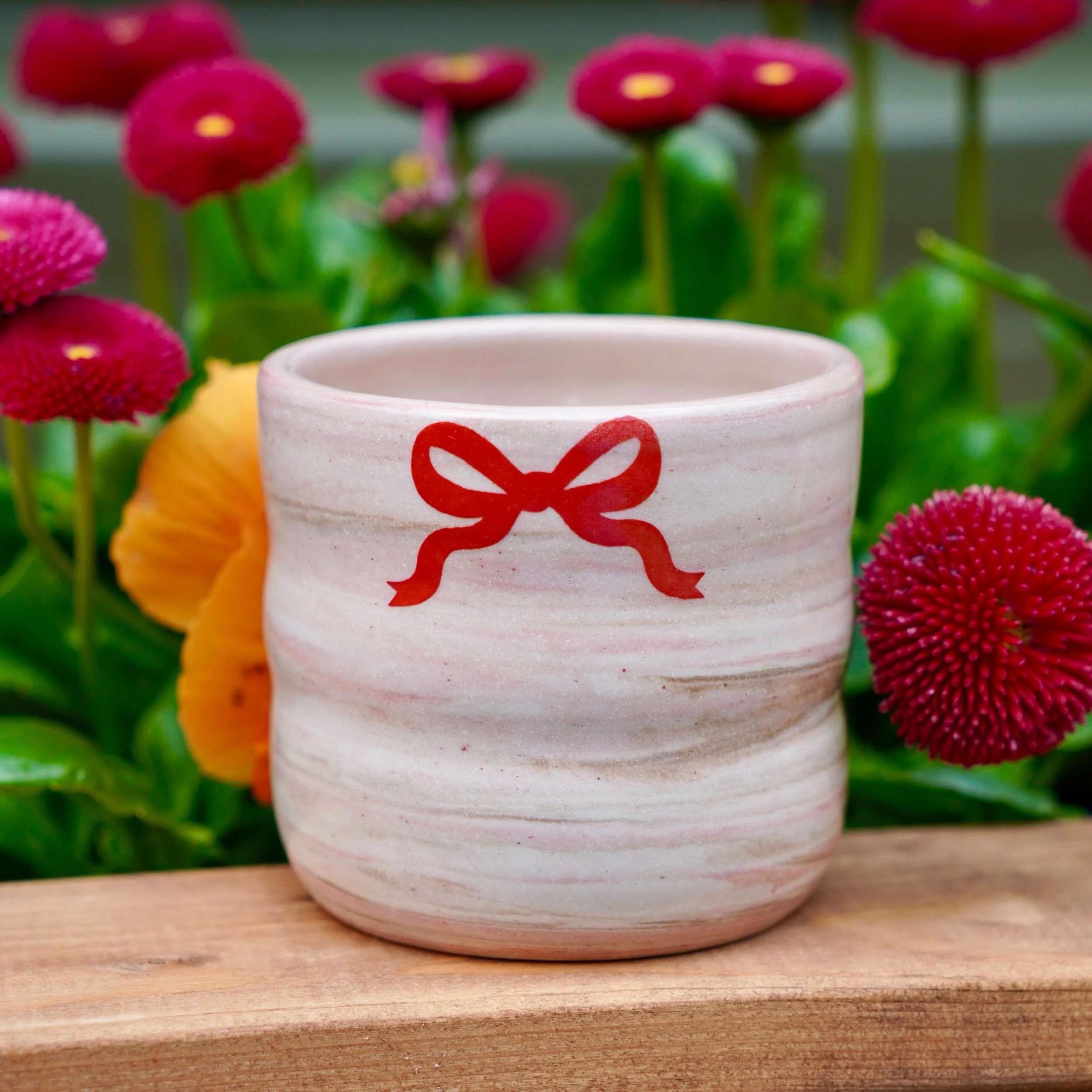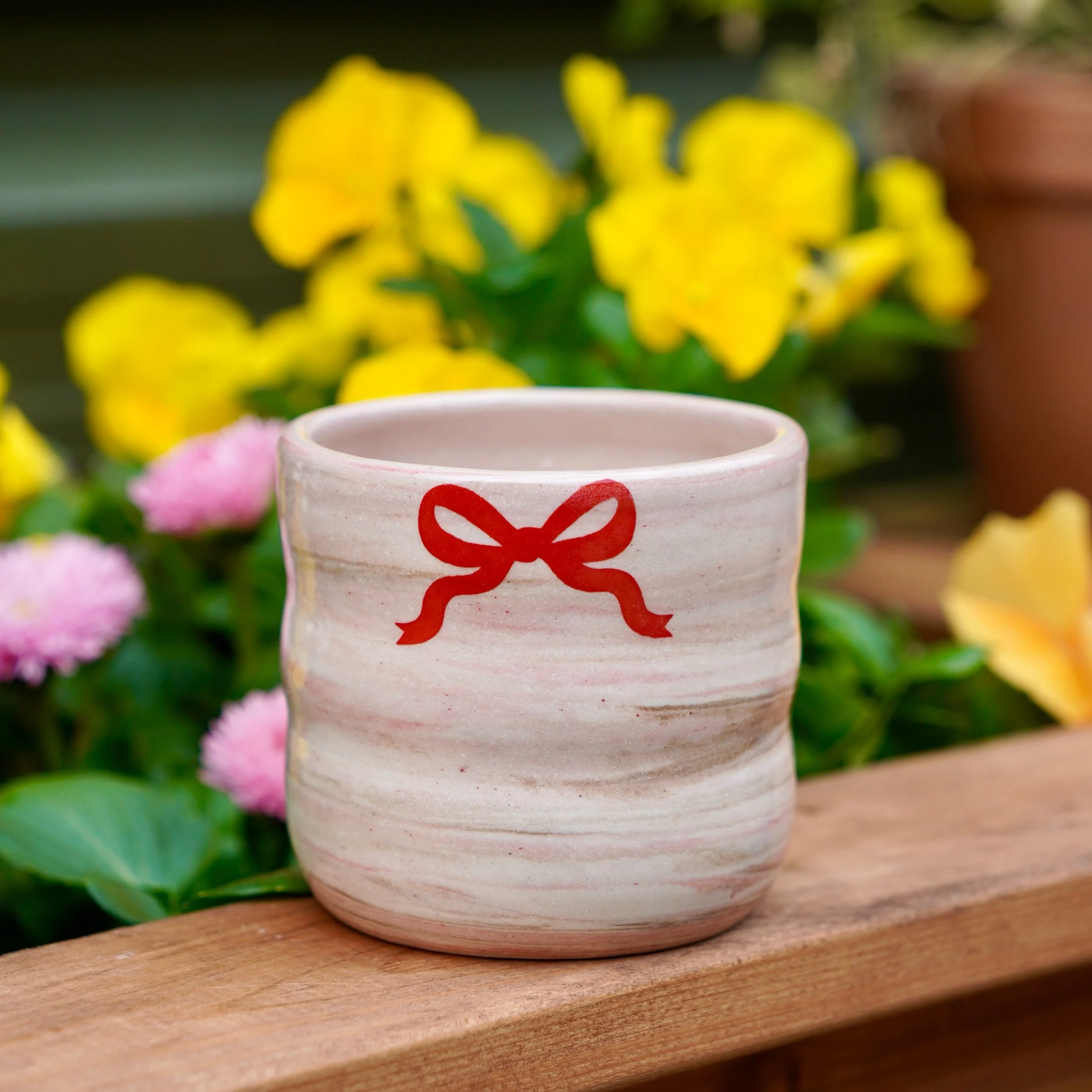 Sold individually. This cup is crafted using a high-quality stoneware clay. It is hand-painted with 3 carefully applied layers of underglaze before being glazed and fired. It is designed to last and be loved forever. As the clay is marbled, each piece is totally unique.