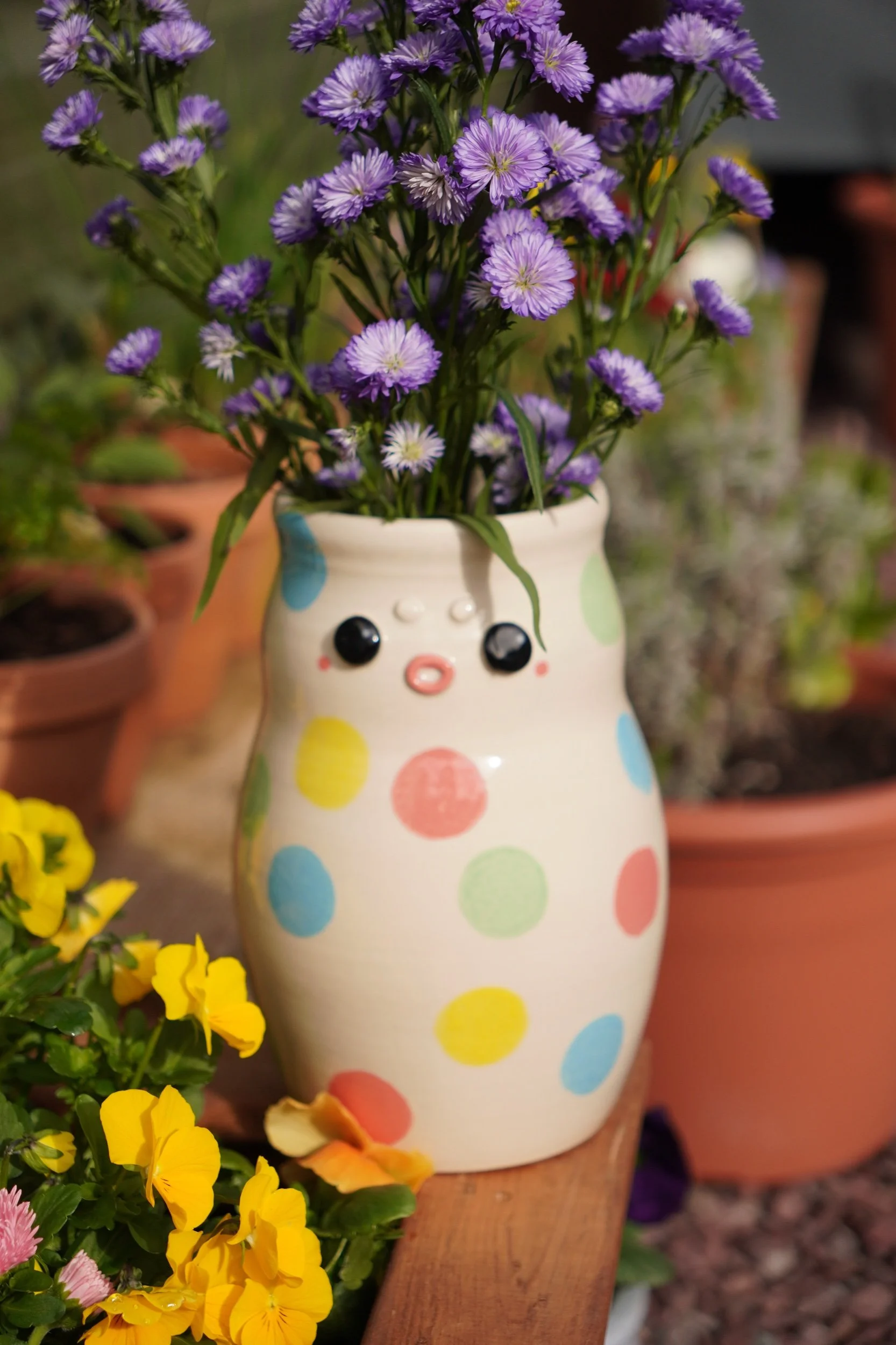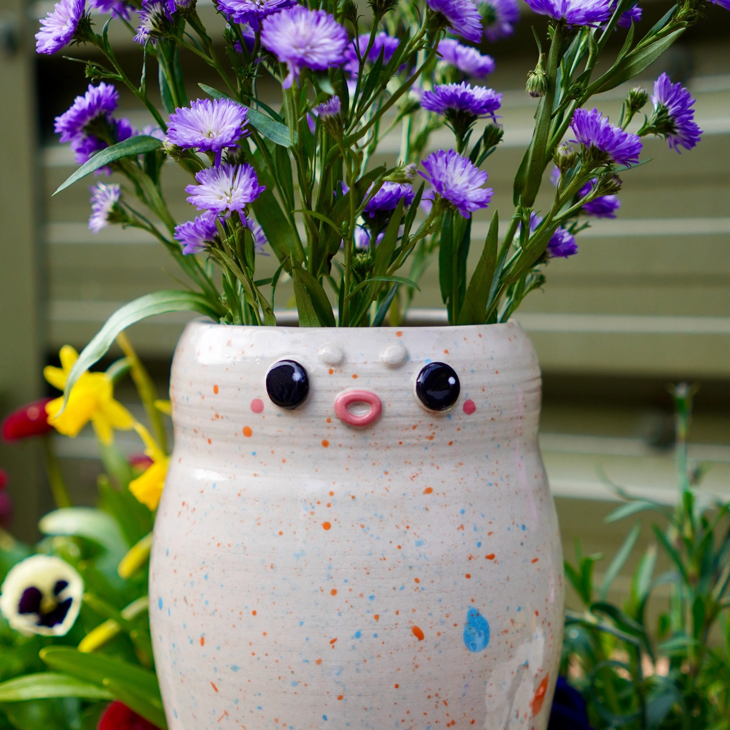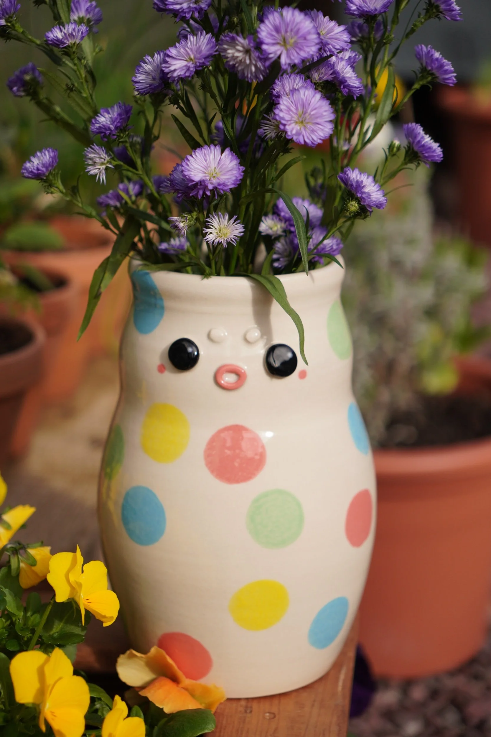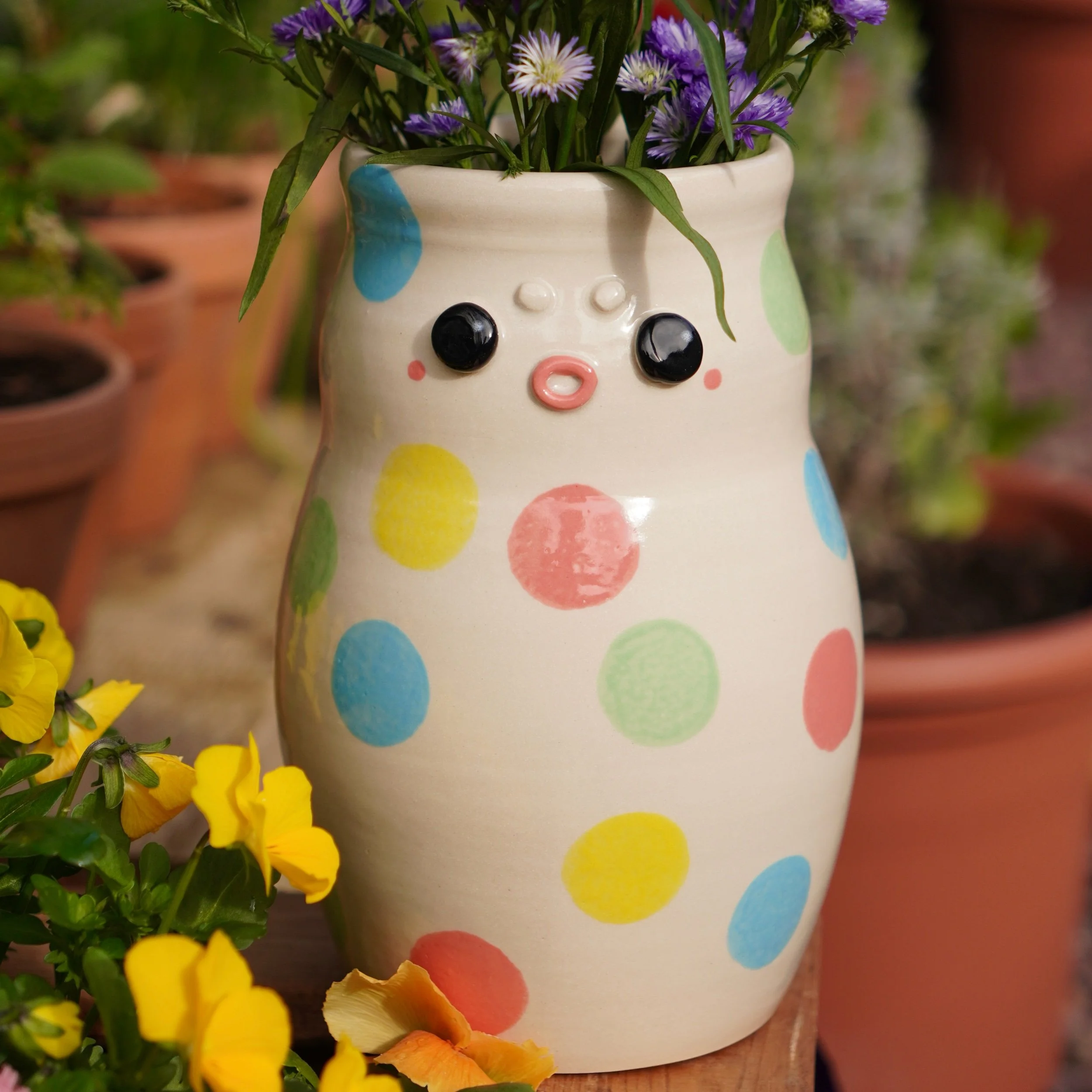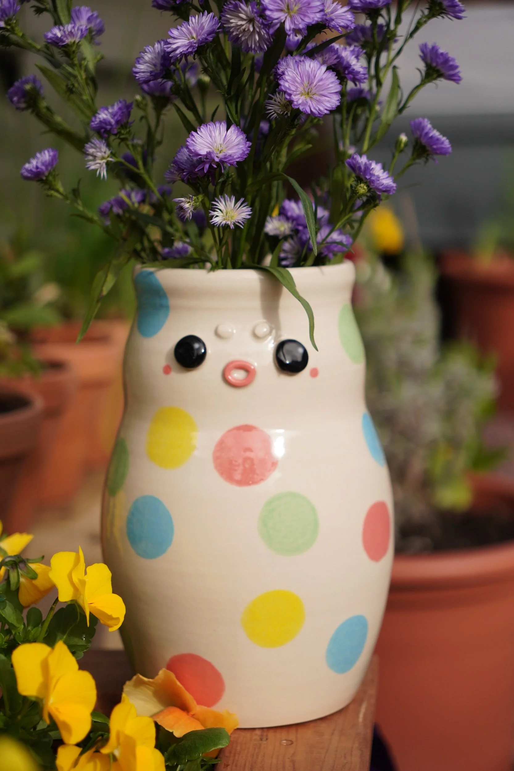 This is a one of a kind vase that is sure to brighten up a room with or without flowers!