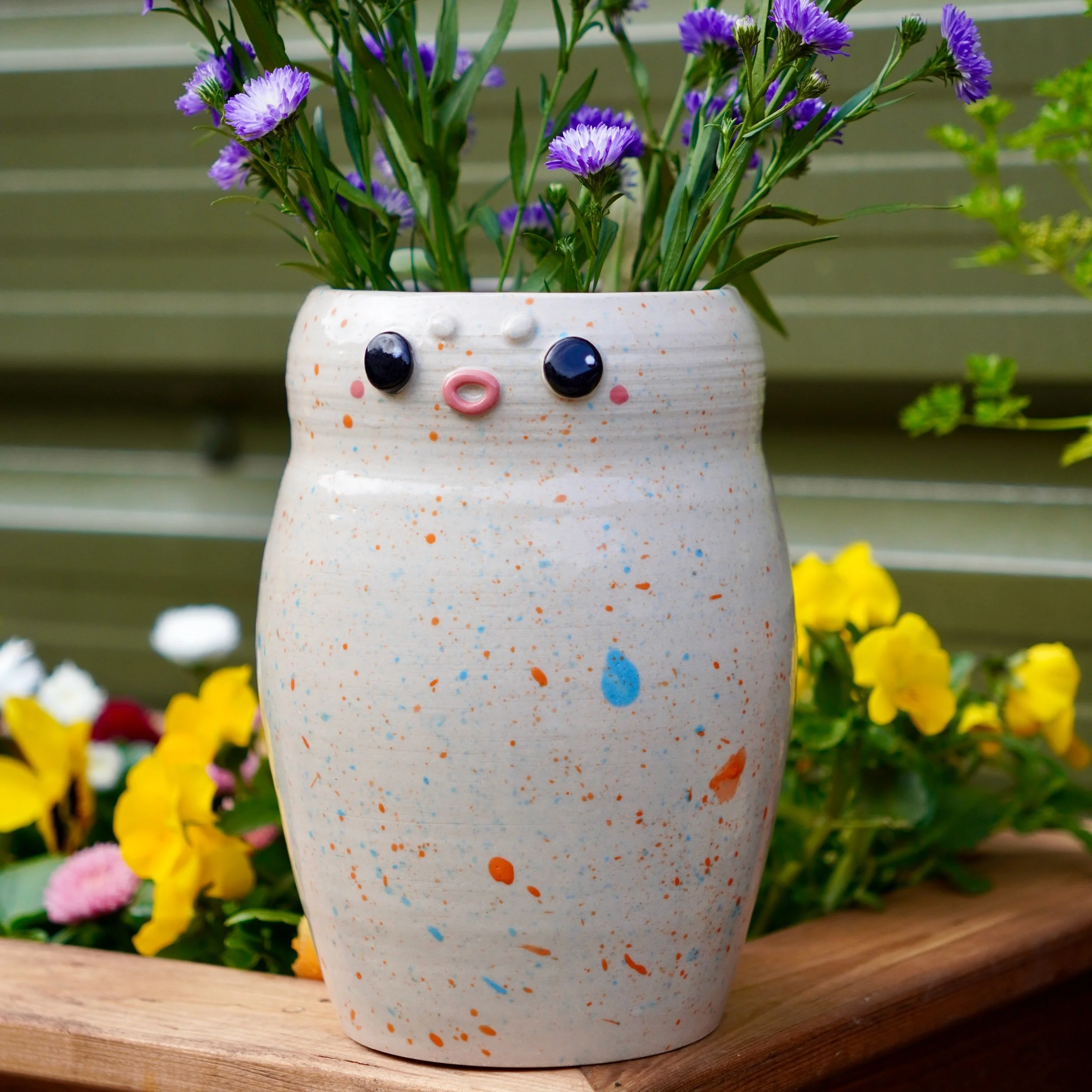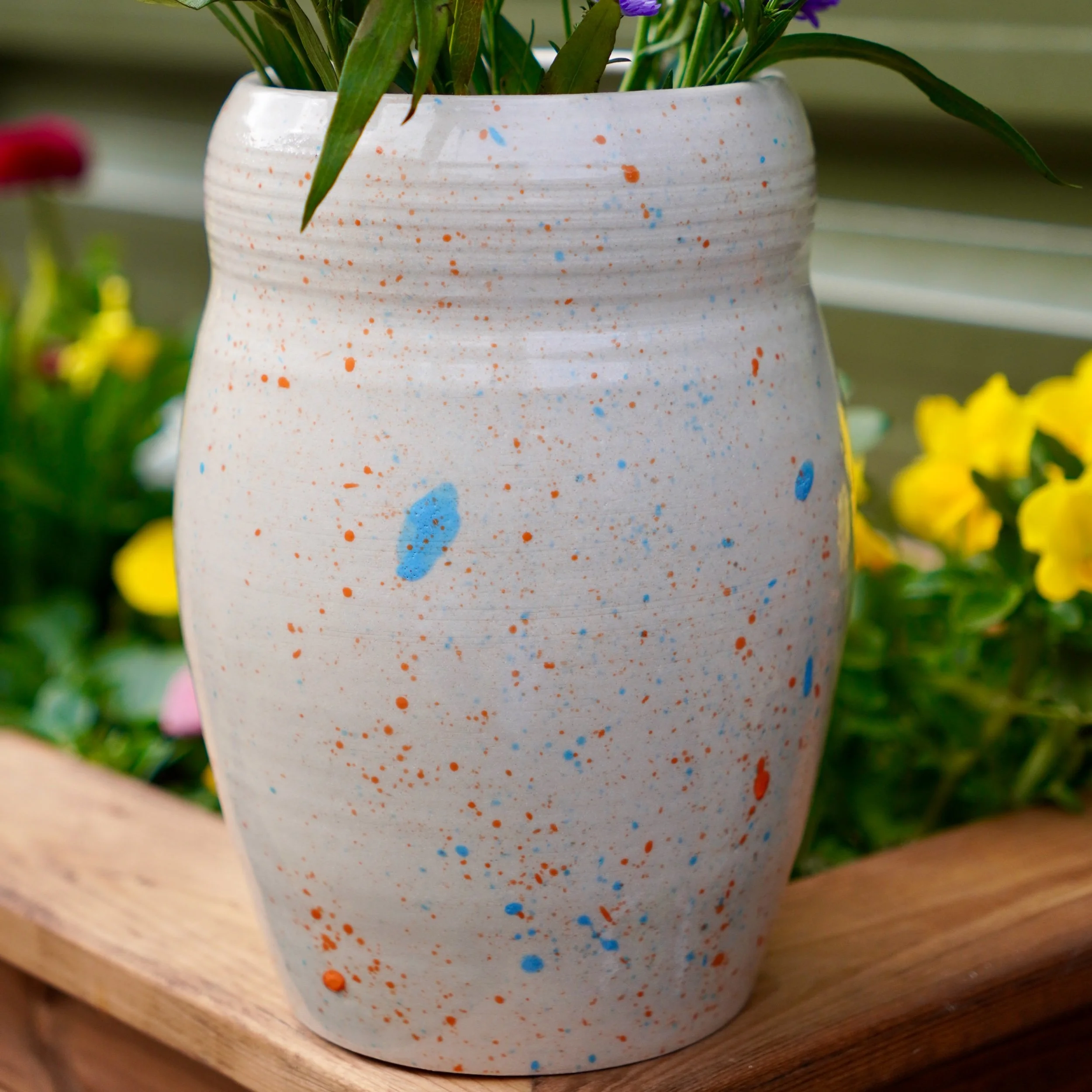 20cm tall approx. The vase is crafted using a high-quality stoneware clay. It is hand-painted with 3 carefully applied layers of underglaze before being glazed and fired. It is designed to last and be loved forever.